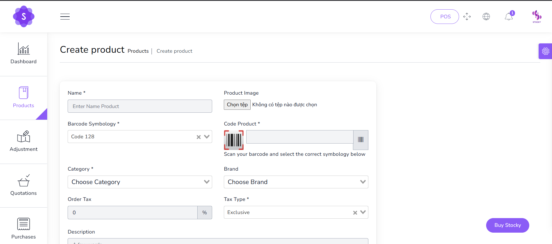 Tính năng chính của hệ thống quản lý bán hàng StockyTrang tổng quan (Dashboard)