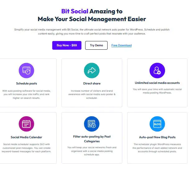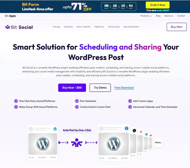 Bit Social là plugin tự động đăng bài hoàn hảo dành cho WordPress, giúp đơn giản hóa việc quản lý mạng xã hội bằng cách tự động chia sẻ các bài viết WordPress của bạn trên nhiều nền tảng mạng xã hội và chia sẻ khác nhau.