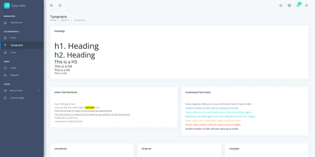 DattaAble là một template miễn phí được thiết kế tỉ mỉ, lý tưởng cho các website giám sát và quản lý dữ liệu. Với giao diện rõ ràng, dễ đọc và bố cục trực quan, DattaAble giúp việc trực quan hóa dữ liệu và quản trị hệ thống trở nên đơn giản hơn bao giờ hết.