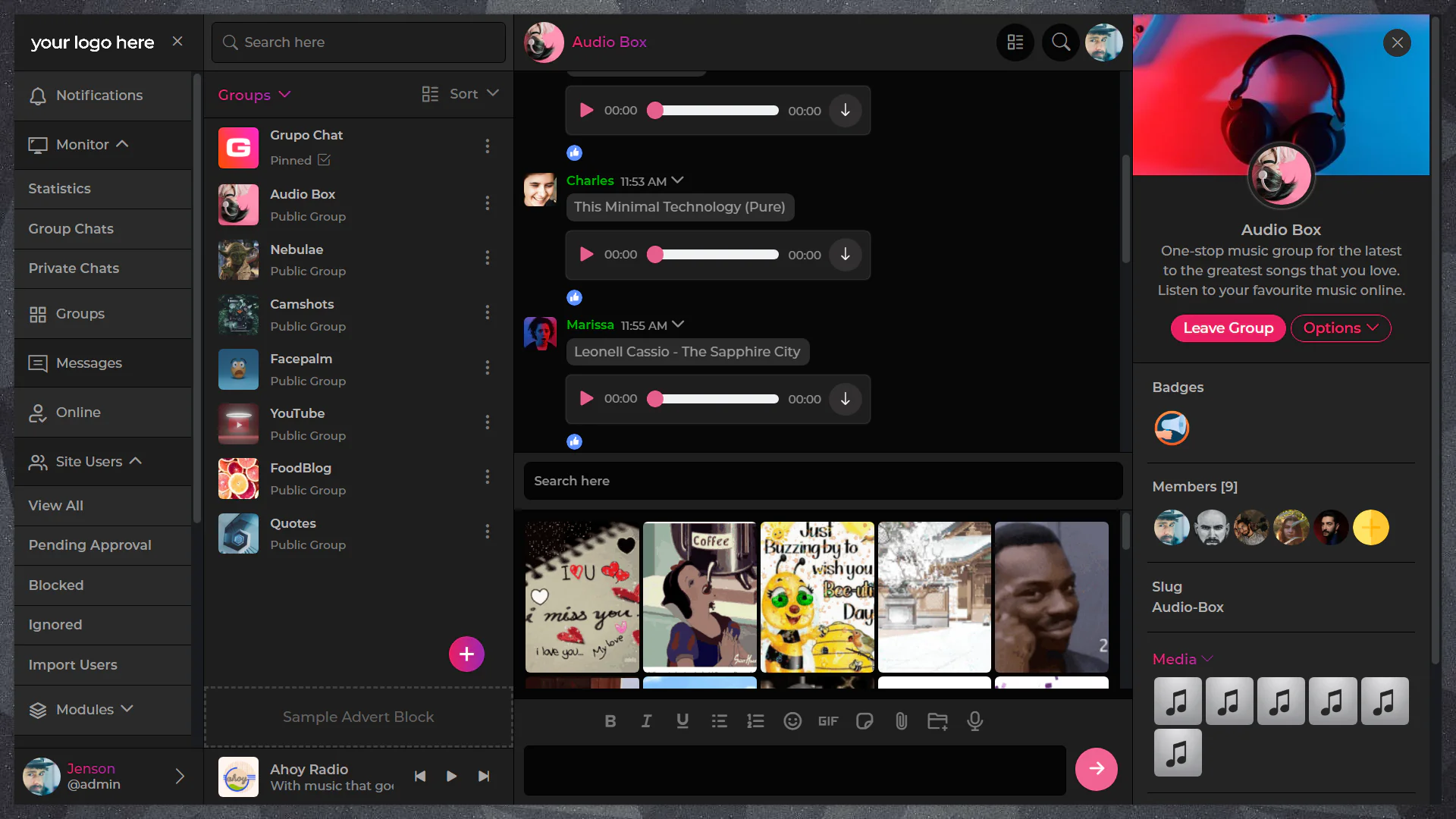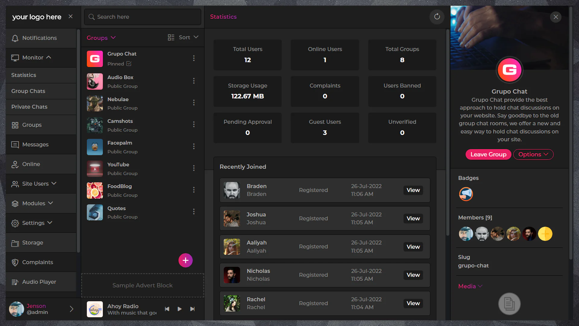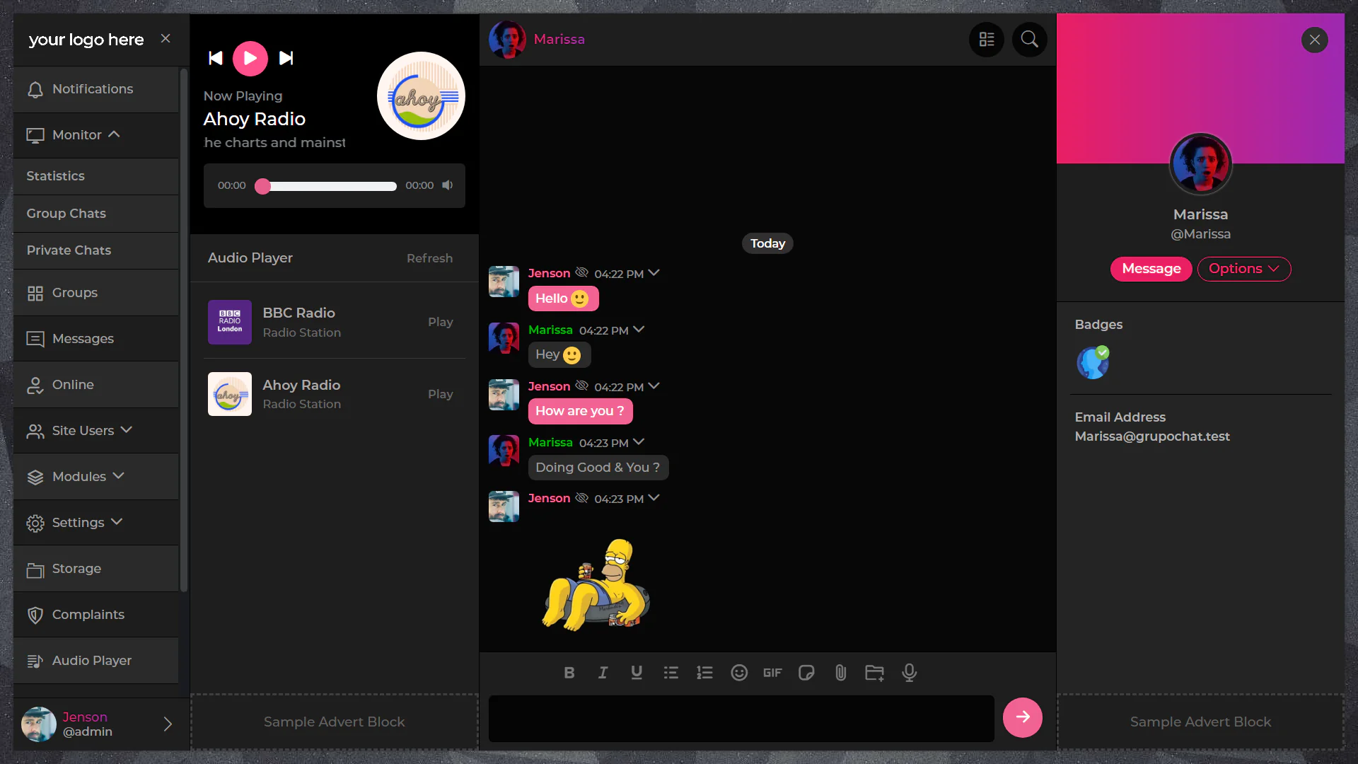 Grupo Chat là một mã nguồn mở dành cho việc xây dựng ứng dụng chat cực kỳ linh hoạt và mạnh mẽ. Với Grupo Chat, bạn có thể tạo ra các tính năng chat private hoặc chat group một cách dễ dàng và nhanh chóng.