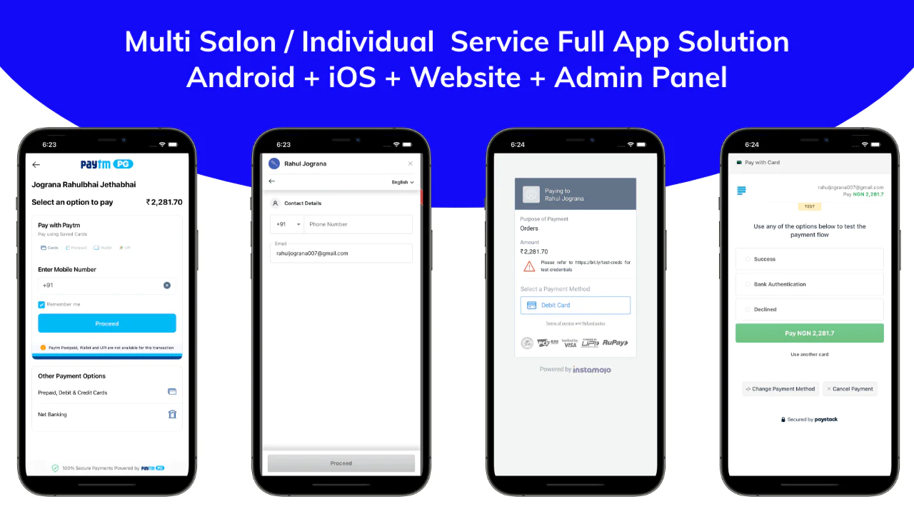 Multi Salon Service App là ứng dụng hoàn chỉnh được phát triển bằng Flutter 3, hỗ trợ đầy đủ cho cả Android, iOS và Website. Ứng dụng được thiết kế dành riêng cho hệ thống salon làm đẹp đa chi nhánh hoặc đa dịch vụ, giúp quản lý đặt lịch, khách hàng và hoạt động kinh doanh một cách thông minh và chuyên nghiệp.