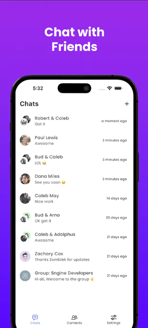 Sngine Messaging Apps giúp bạn tiết kiệm thời gian và tiện lợi trong việc trò chuyện và giao tiếp hàng ngày. Bạn có thể dễ dàng kết nối với mọi người mọi lúc, mọi nơi chỉ với một chiếc điện thoại di động.