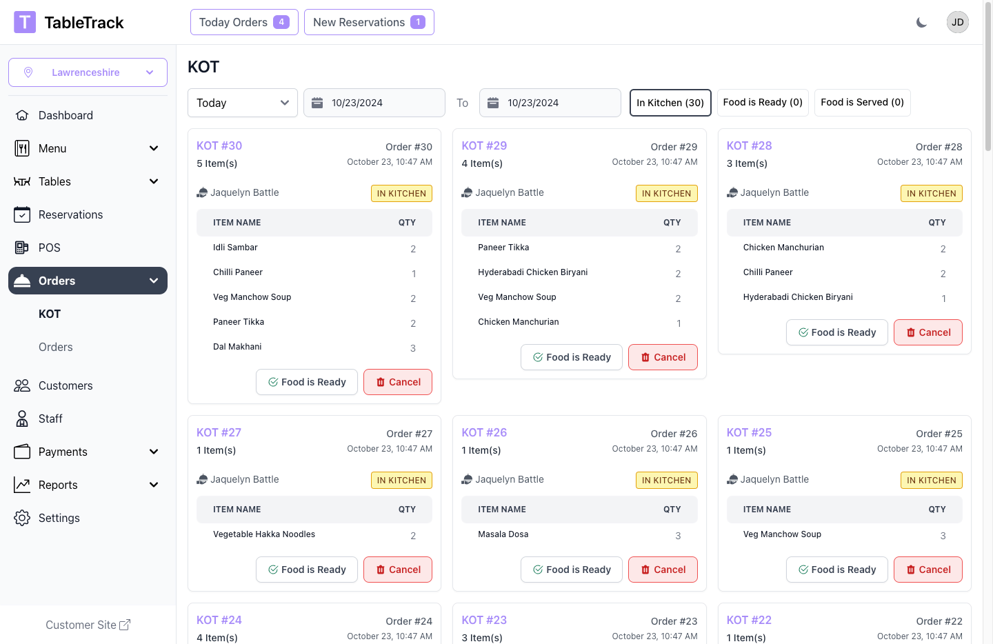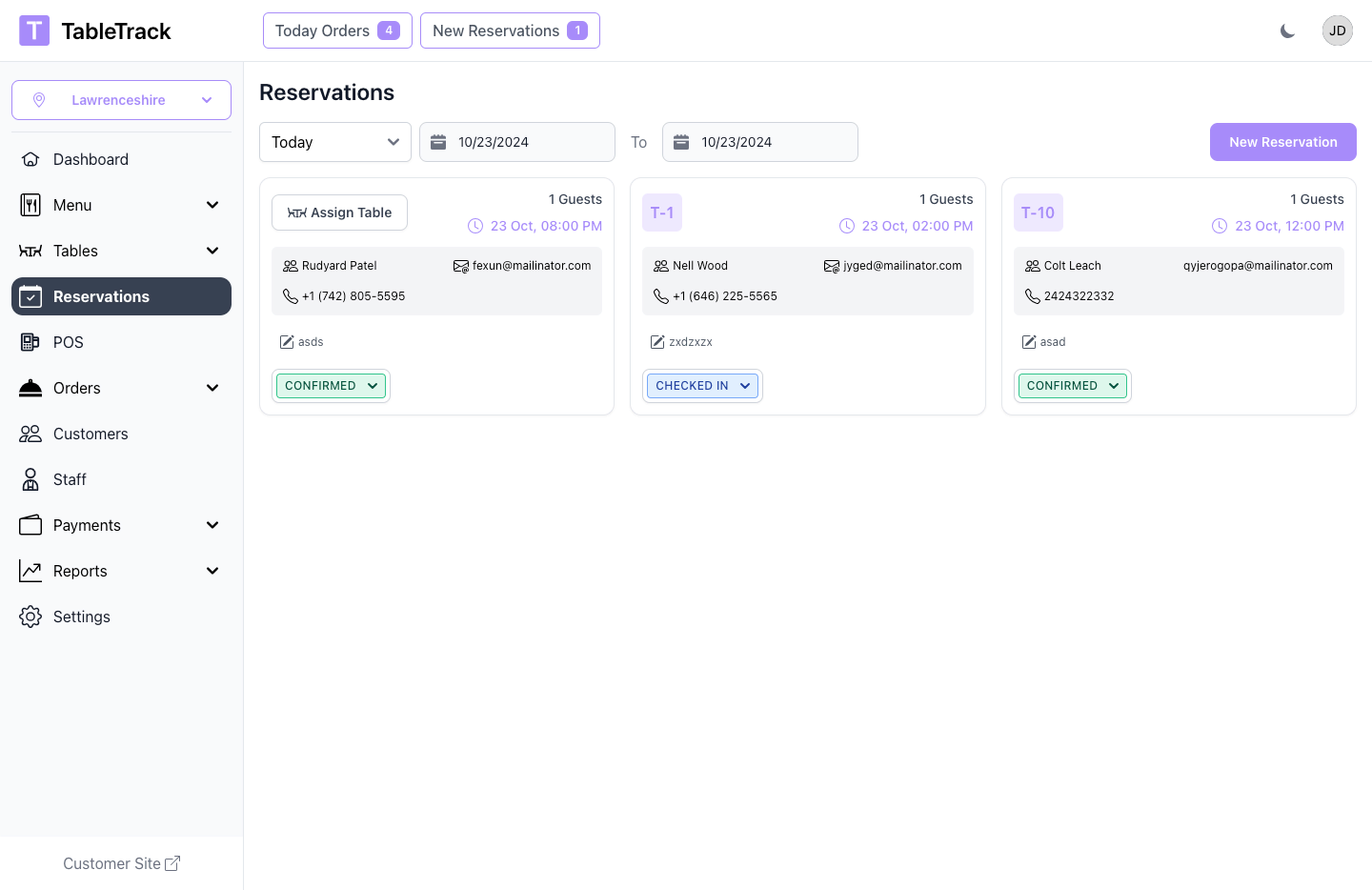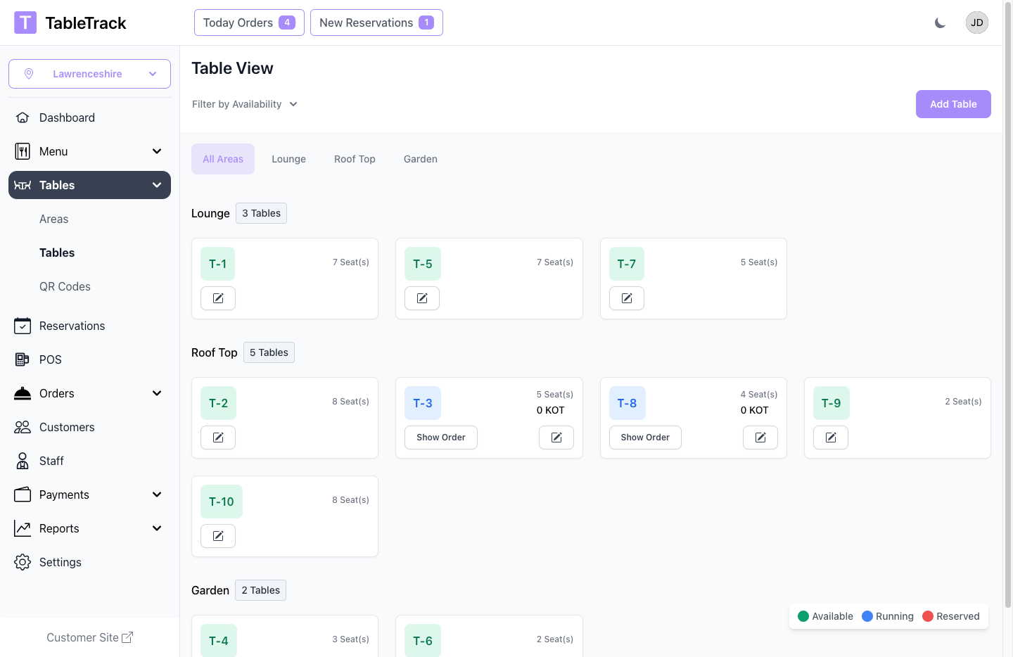 TableTrack là nền tảng quản lý nhà hàng thông minh, được thiết kế đặc biệt để đáp ứng nhu cầu thương hiệu và vận hành độc đáo của mọi cơ sở ăn uống. Từ những quán bistro boutique đến các chuỗi nhà hàng sầm uất, TableTrack cung cấp một hệ thống có thể mở rộng, trực quan và dễ sử dụng để giữ cho nhà hàng của bạn luôn hiệu quả, có tổ chức và được cá nhân hóa cho từng khách hàng.